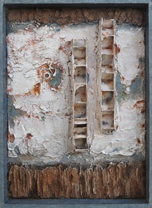 2016Abstract schilderij, verweerd uiterlijk Helft van een tweeluik, zie ook Z.t. 2016 links..