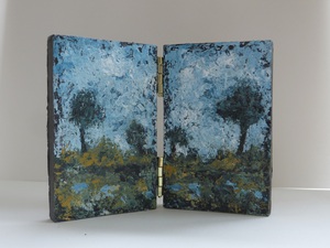De binnenkant van een tweeluikje op mdf geschilderd. De afmetingen in gesloten vorm bedragen 8 * 5 cm. Zie ook Tweeluikje - buitenkant.