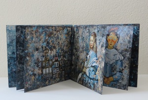 Boekje met abstracte voorstellingen op papier, buitenkant is op mdf-plaat gemaakt.