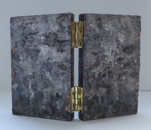 2018Boekje met abstracte voorstellingen op papier, buitenkant is op mdf-plaat gemaakt. De weergegeven maten zijn van het boekje in gesloten toestand.