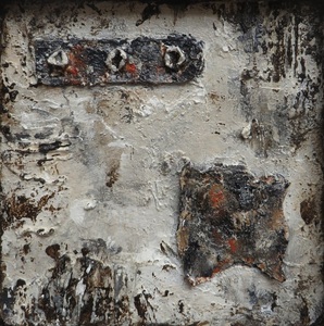2021Klein abstract werk op mdf-plaat met opstaand randje, acrylverf, nummer 4 van een serie van 4 verschillende werkjes.
